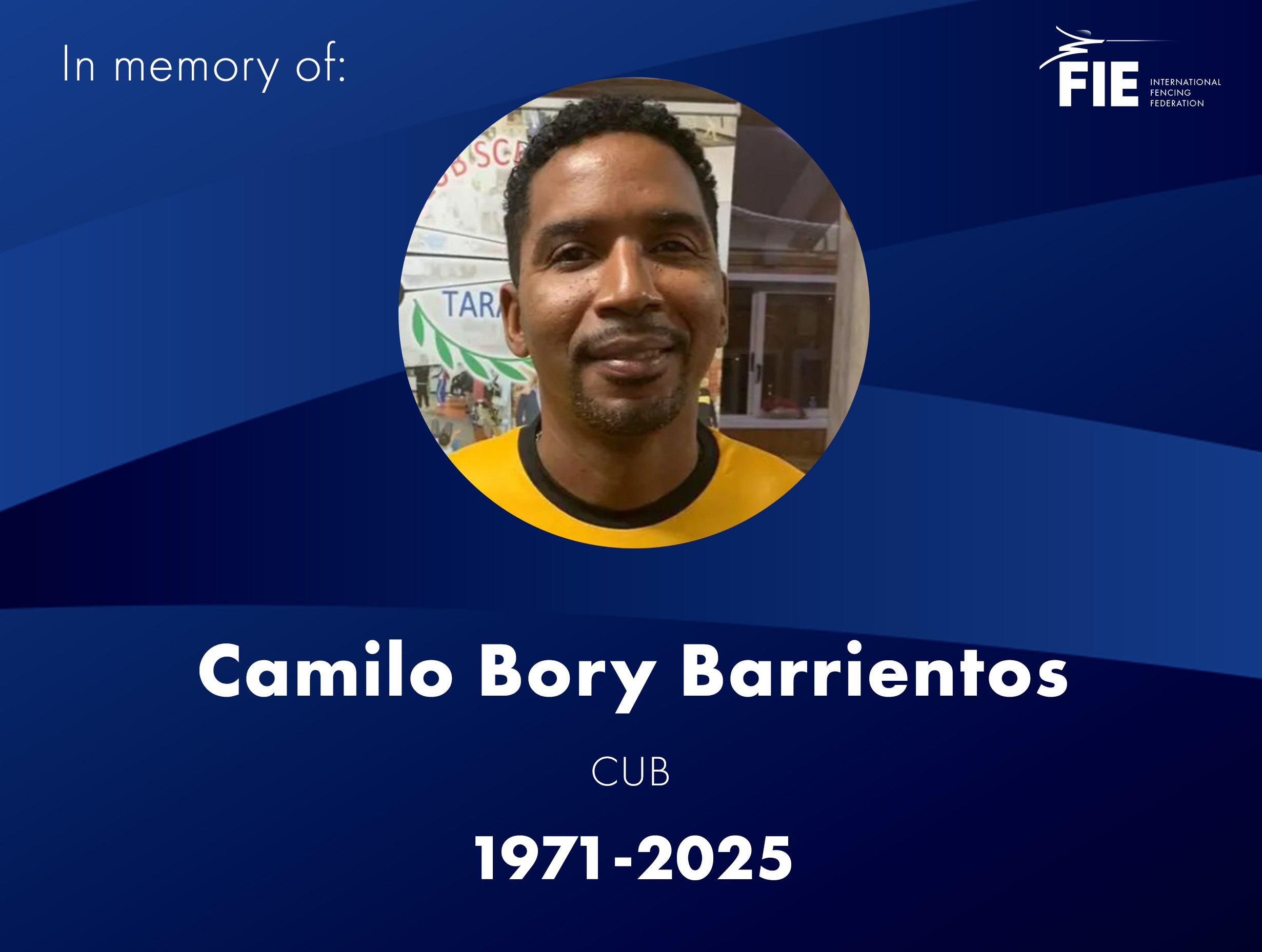 LAUSANNE, Switz., Oct. 15, 2025 – The FIE is saddened to learn of the passing of Camilo Bory Barrientos (CUB) on Sept. 28 and born in Santiago de Cuba on October 28, 1971. An epee fencer, he competed with the Cuban national team for almost two decades and participated in more than 80 international competitions, and won the gold medal in men’s team epee at the 1993 World University Games in Buffalo, New York, USA.