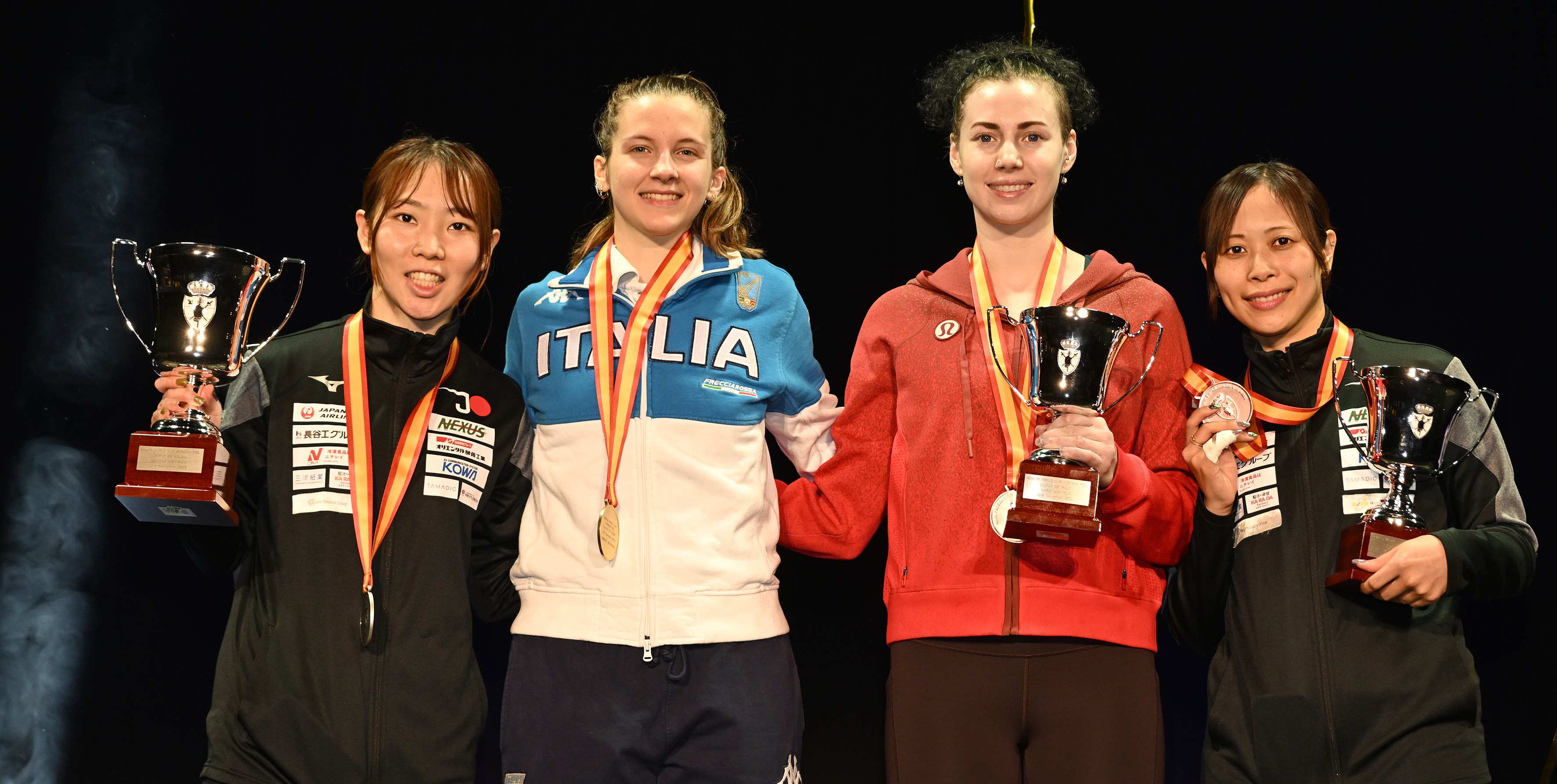 Final results in women’s individual foil included Martina Favaretto (ITA, gold), Yuka Ueno (JPN, silver), Eleanor Harvey (CAN, bronze), Komaki Kikuchi (JPN, bronze), Pauline Ranvier (FRA), Anne Kleibrink (GER), Marta Martyanova (_AIN) and Martina Sinigalia (ITA).
