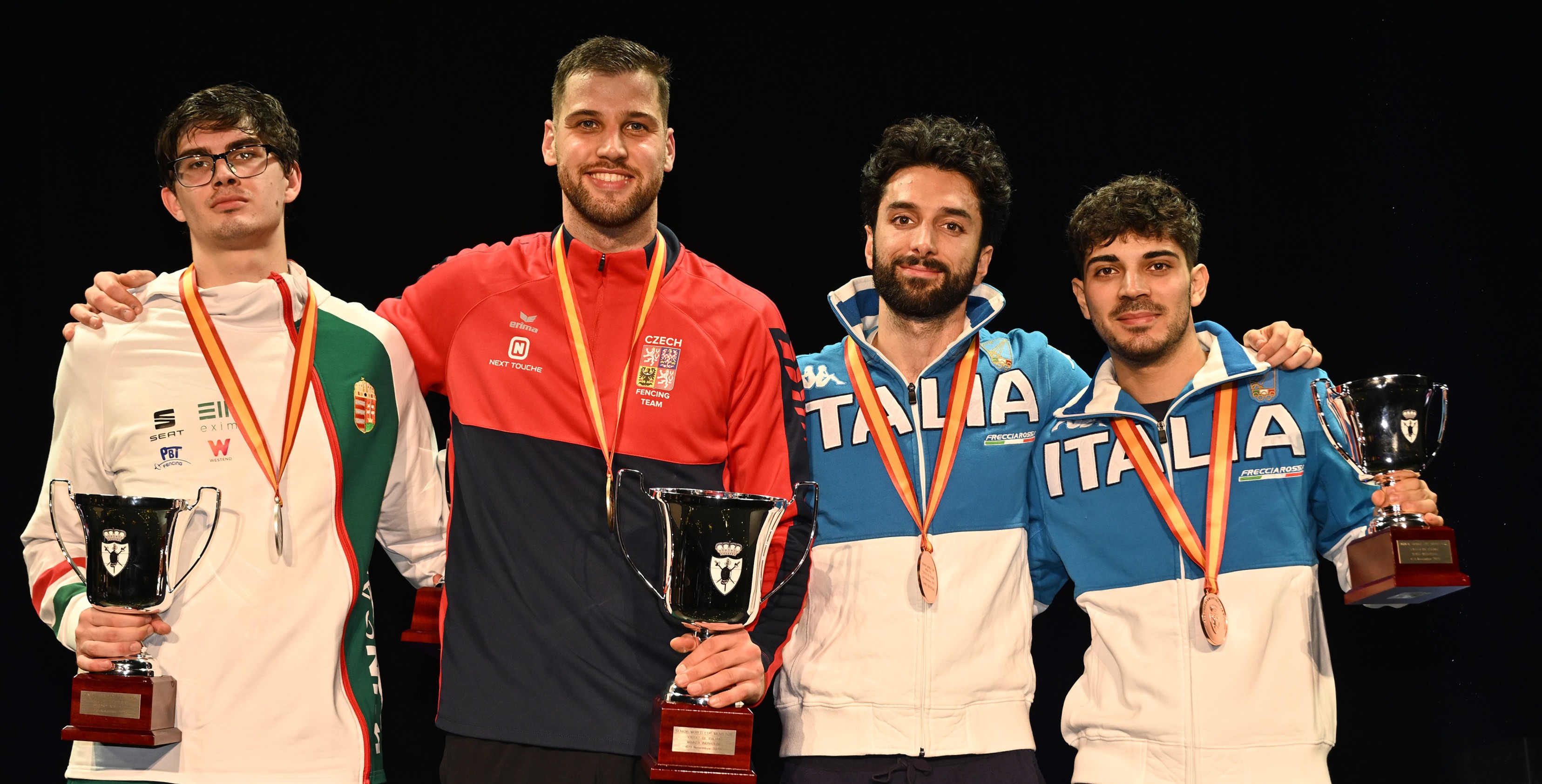 Final results in men’s individual foil included Alexander Choupenitch (CZE, gold), Gergo Szemes (HUN, silver), Guillaume Bianchi (ITA, bronze), Tommaso Martini (ITA, bronze), Chih Chieh Chen (TPE), Edoardo Luperi (ITA), Marcello Olivares (USA) and Anton Borodachev (_AIN).