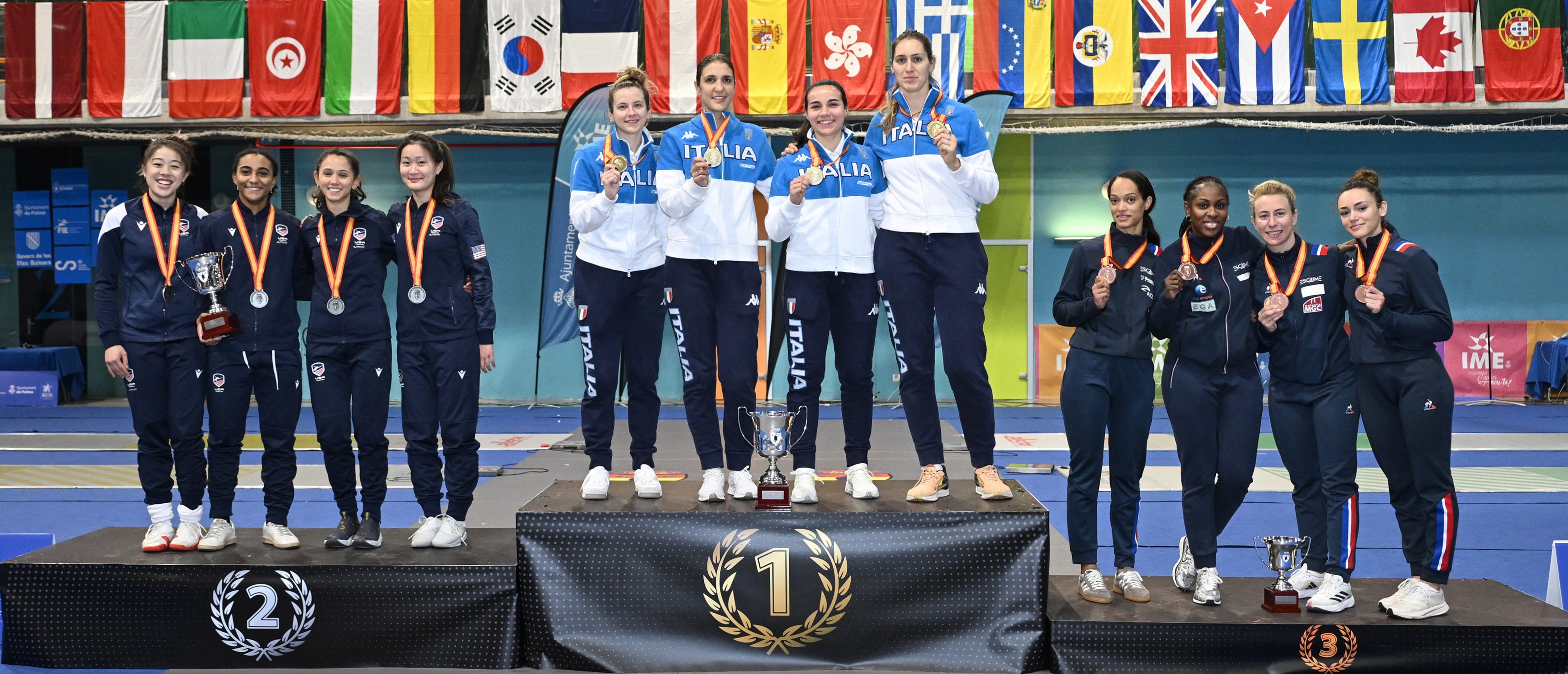 Final results in women’s team foil included Italy (gold), USA (silver), France (bronze), Japan, Ukraine, Canada, Republic of Korea and China.