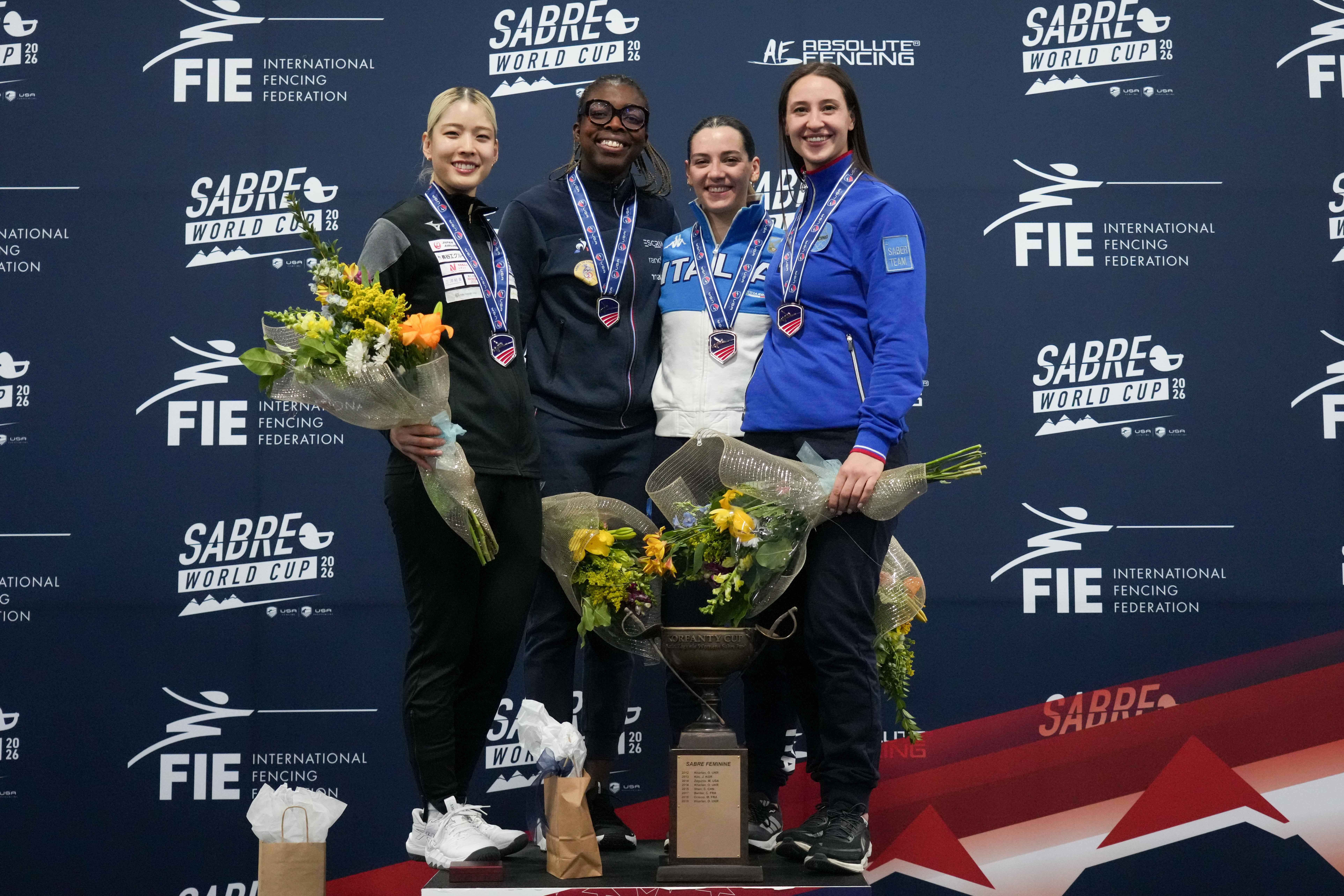 Sarah Noutcha (FRA, gold), Misaki Emura (JPN, silver), Michela Battiston (ITA, bronze), Yana Egorian (_AIN, bronze), Sugar Katinka Battai (HUN), Lucía Martín-Portugués (ESP), Anna Spiesz (HUN), Manon Apithy (FRA).