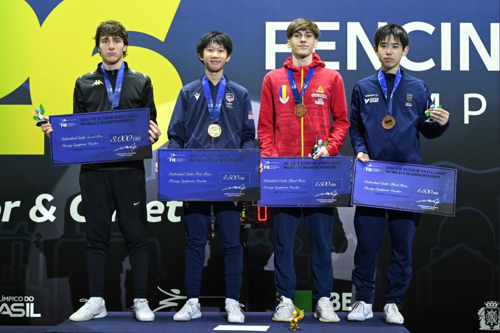 Aiden Tse of the United States emerged victorious from a field of 111 fencers, defeating Giorgi Urushadze of Georgia 15–10 to claim gold in the Cadet men’s sabre competition.