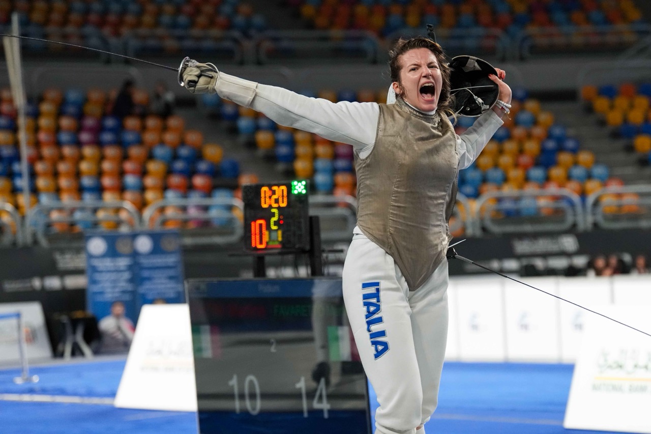 Martina Favaretto of Italy defeated countrymate Martina Batini 15-10 to win the women’s foil World Cup in Cairo, Egypt, topping a field of one hundred and seventy fencers.