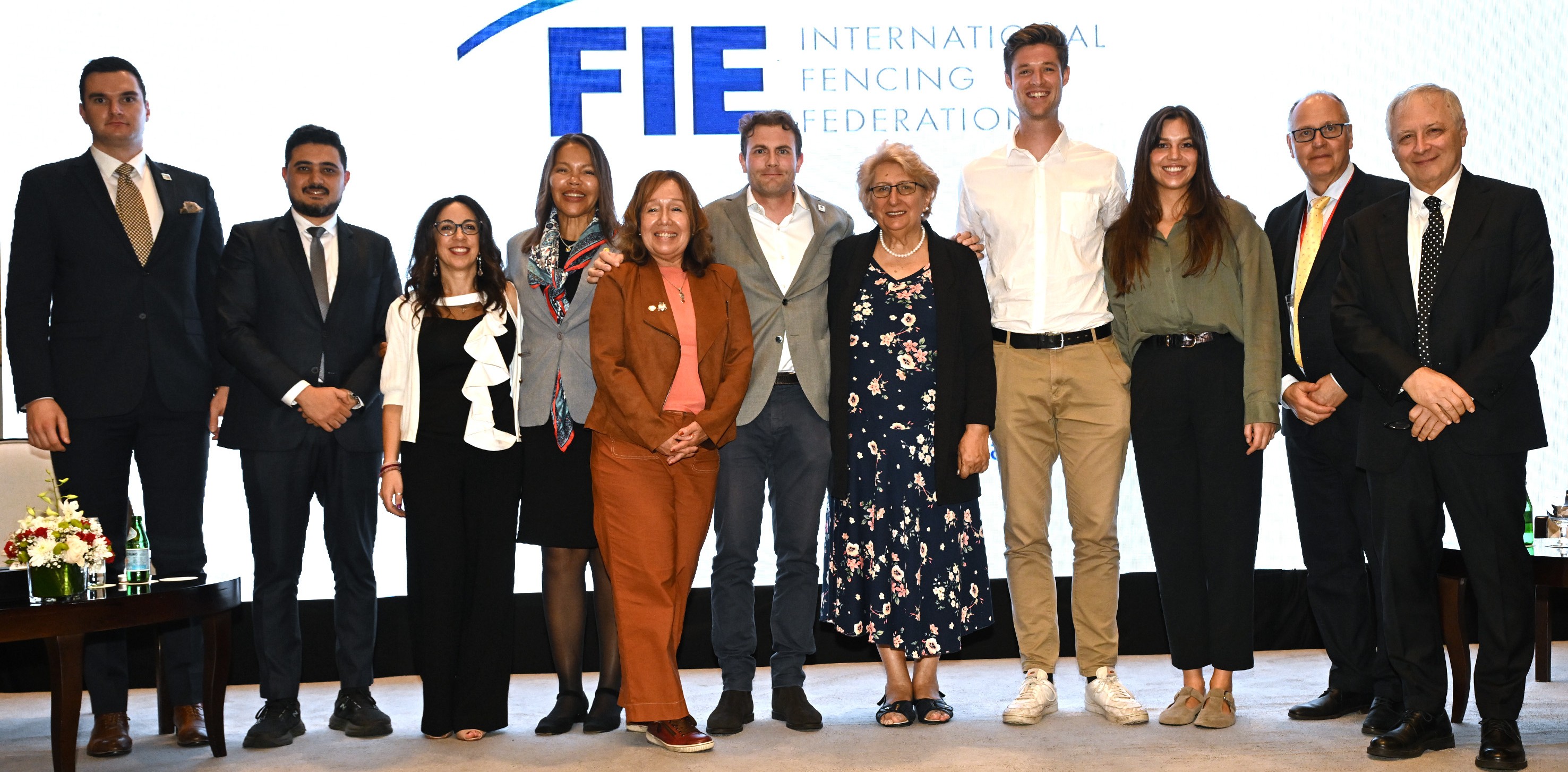 As part of the Championships, an FIE Roundtable was held on Nov. 18 entitled “Veteran Fencers as Role Models: Health, Responsibility and the Future of Our Sport”. In addition to Ms. Hristeva, the Roundtable included a video statement by Khaled El Mekwad, United Nations Resident Coordinator as well as panellists including Paul Midgley, Team Lead, ITF World Tennis Master Tour; Joyce Bolaños, FIE Veterans’ Council and FIE Fencing and the Environment Working Group member; Antonio Fiore, President of the FIE Medical Commission; Rita Comes, President of the FIE Veterans’ Council; and Victor Bianchini (POR), active veteran fencer.